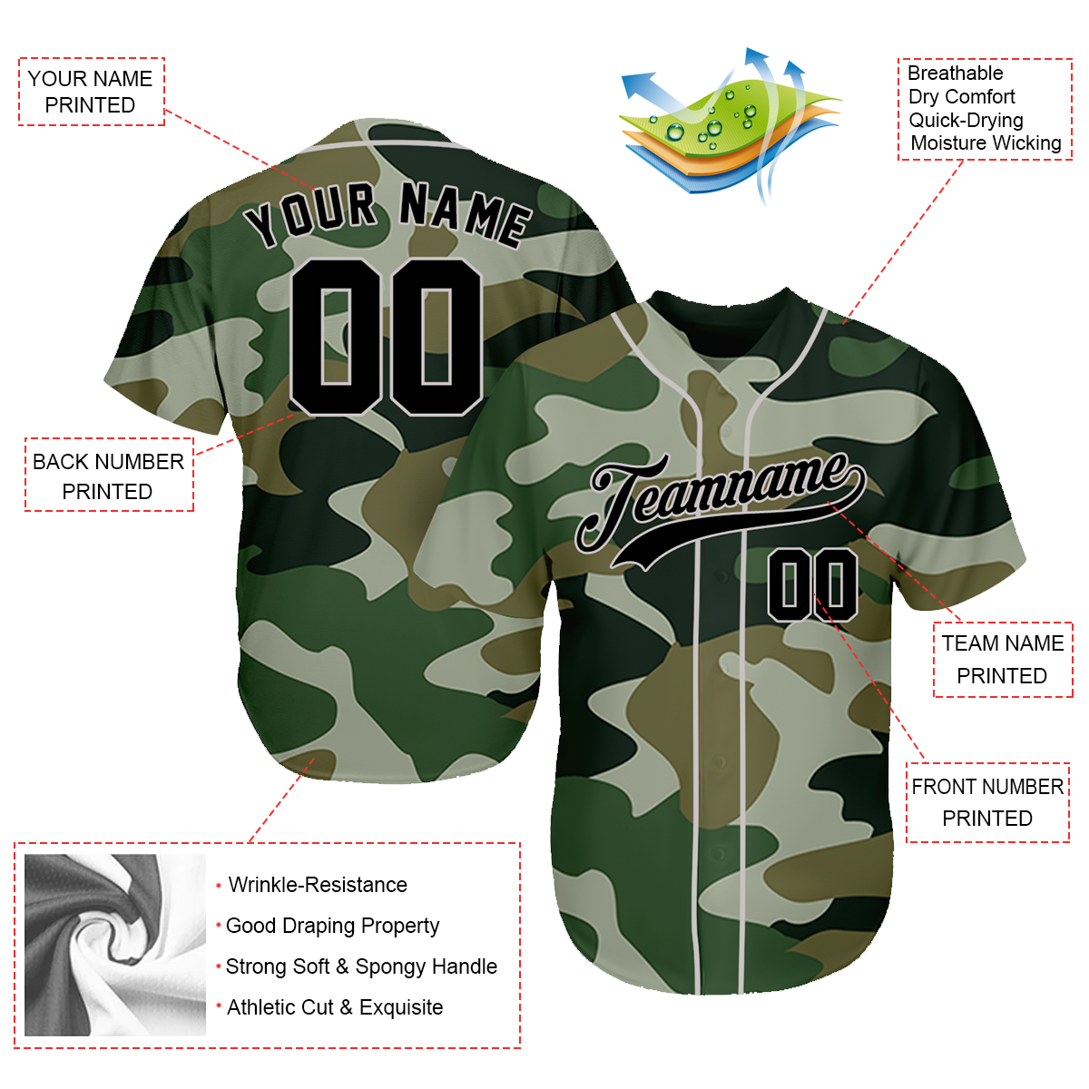 Customizable Baseball Jersey - Amazing Gifts For Baseball Fans - Veteran Salute To Service Camouflage - Father's Day Baseball Gift Ideas BJC1