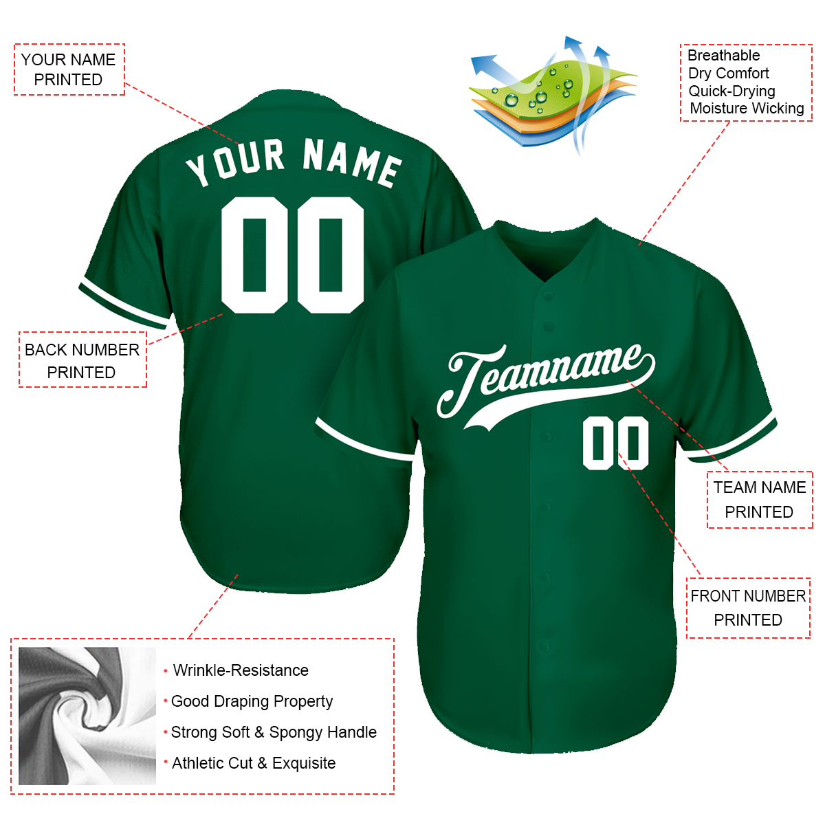 Custom Button Down Baseball Jerseys - Good Gifts For Baseball Fans - Split Green White - St. Patrick's Day Baseball Outfit