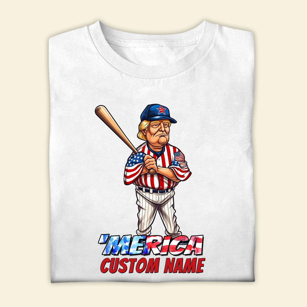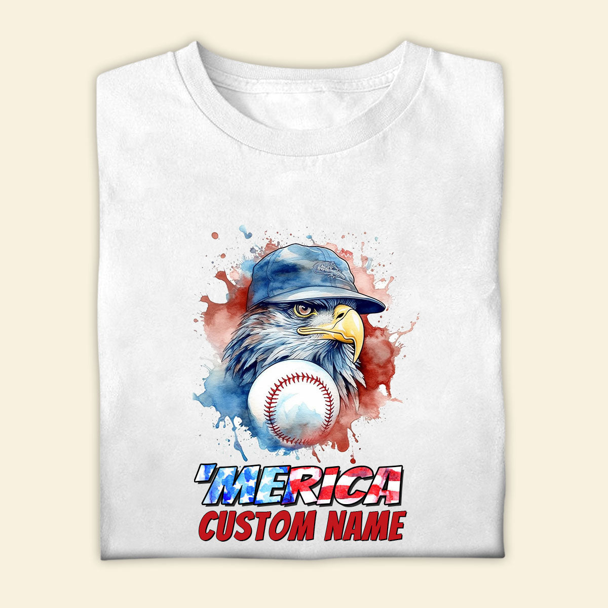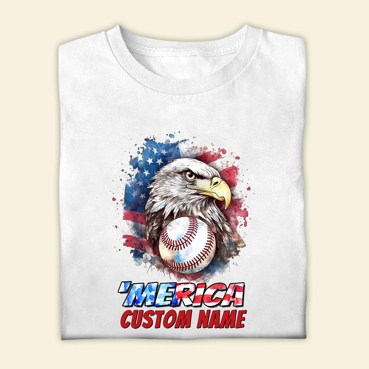 4th Of July Baseball Shirt - Merica - Gift Independence Day For Baseball Lover - Custom Name